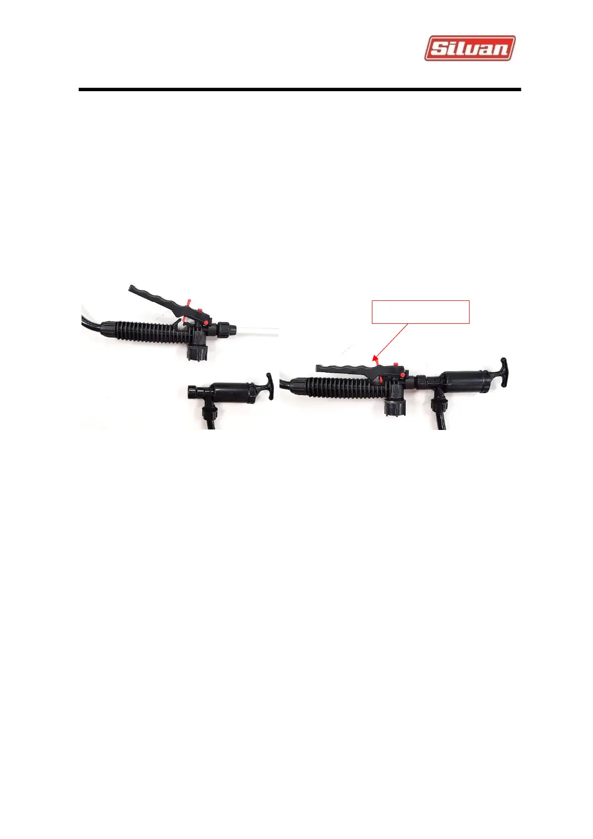 3. Connect the hand pump as shown in the pictures below and lock the trigger on