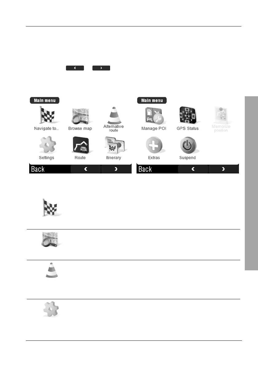 The GPS main menu is your central point of access to all functions of your