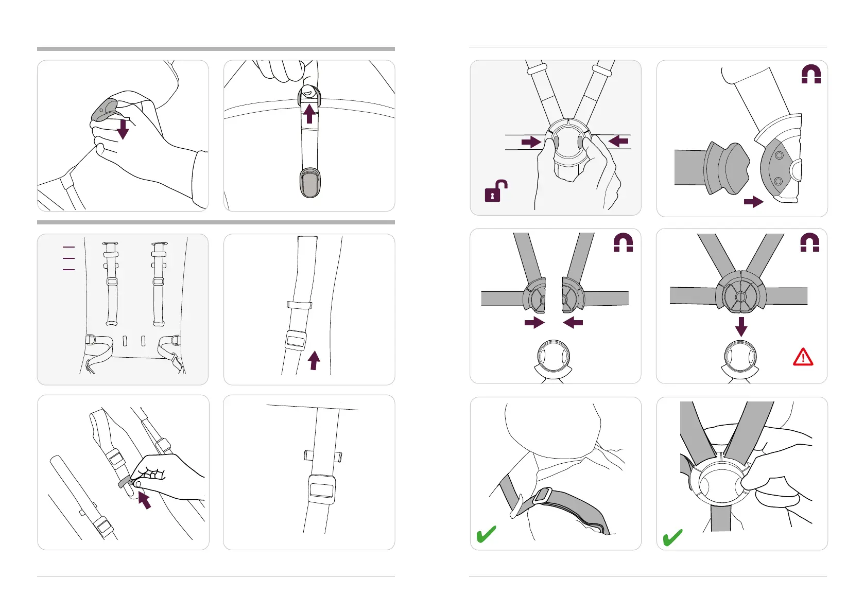 Silver Cross Auto - Harness System; Harness Buckle Operation; Harness Strap Adjustment