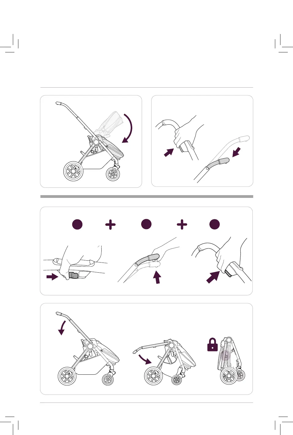 Silver Cross REEF - Stroller Adjustments and Folding; Canopy Adjustment; Handlebar Adjustment Sequence; Final Folding Procedure