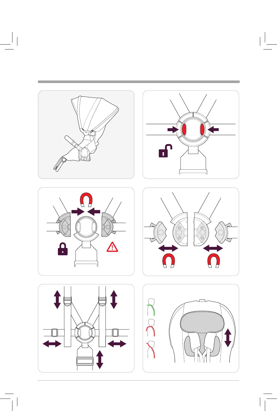 Silver Cross REEF - Seatbelt and Harness System; Buckle Engagement and Release; Harness Strap Adjustment