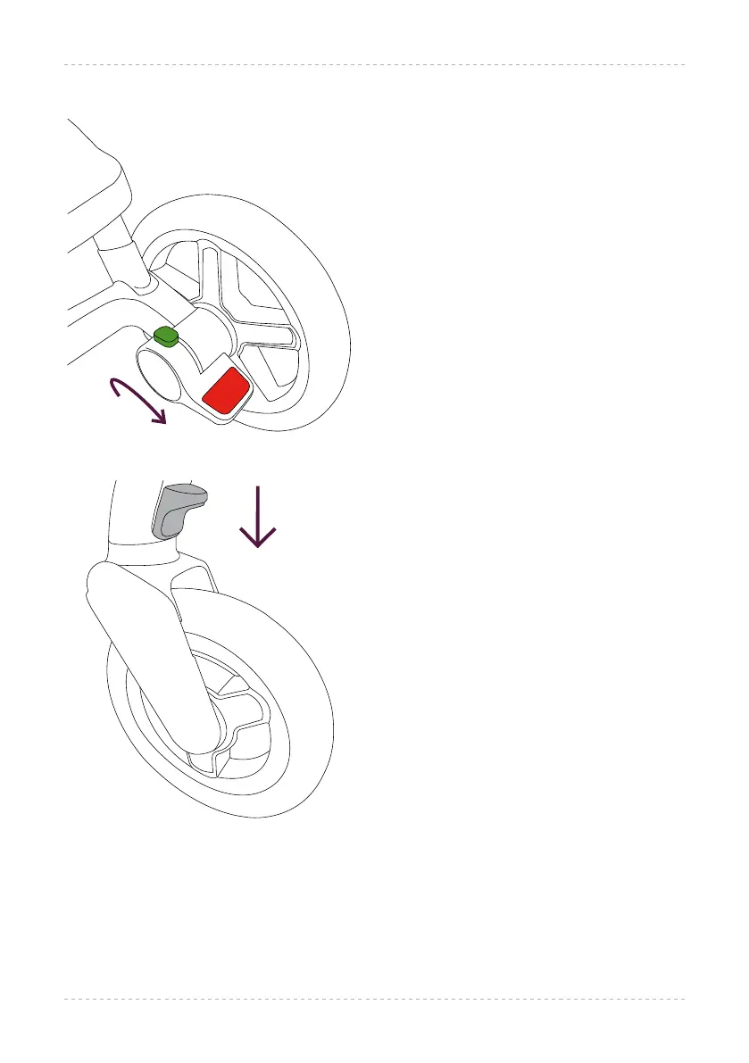 7.1 Push the swivel wheel lock