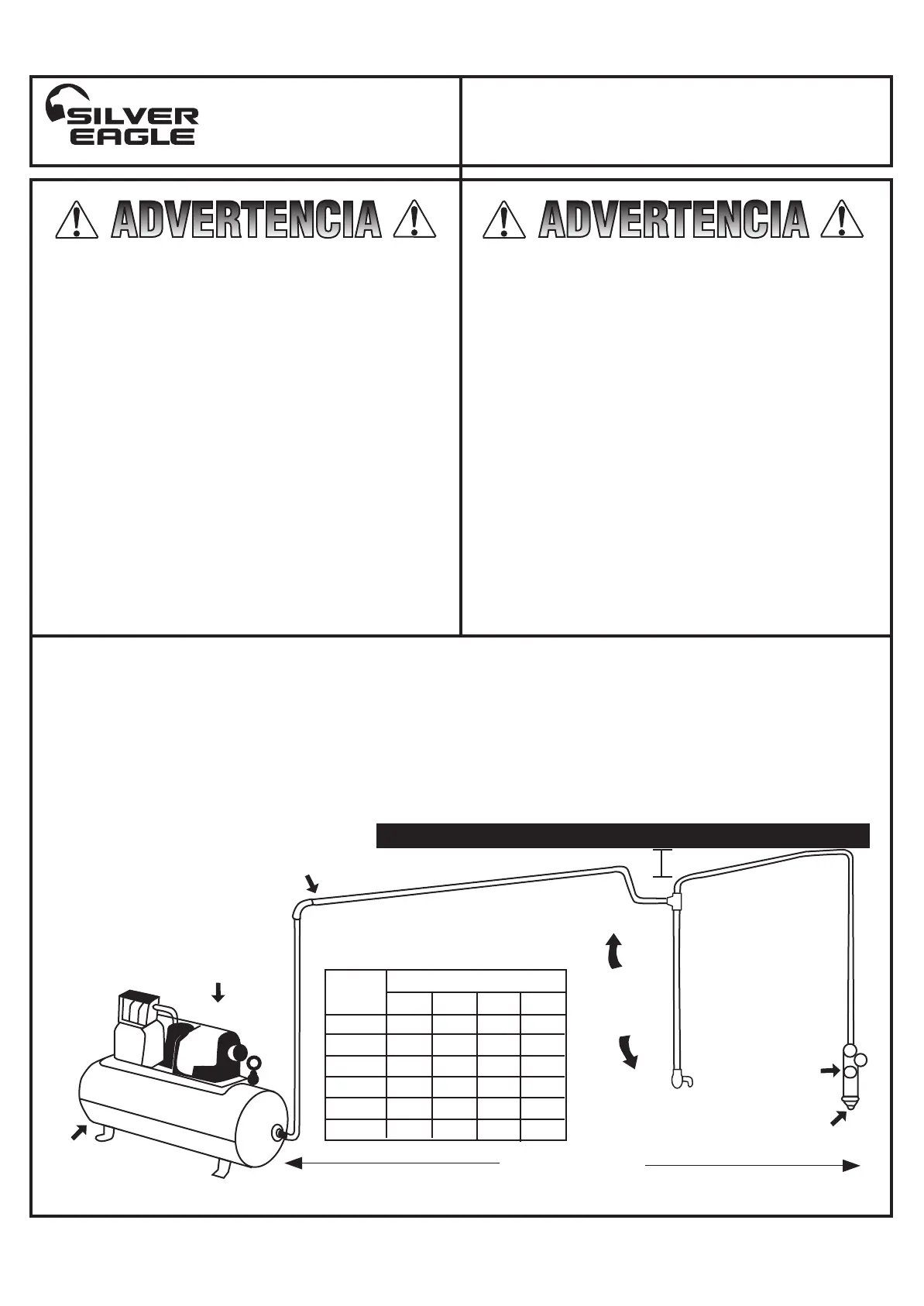 El aceite y el agua extractor debe ser de al menos 25ft. desde el compresor.