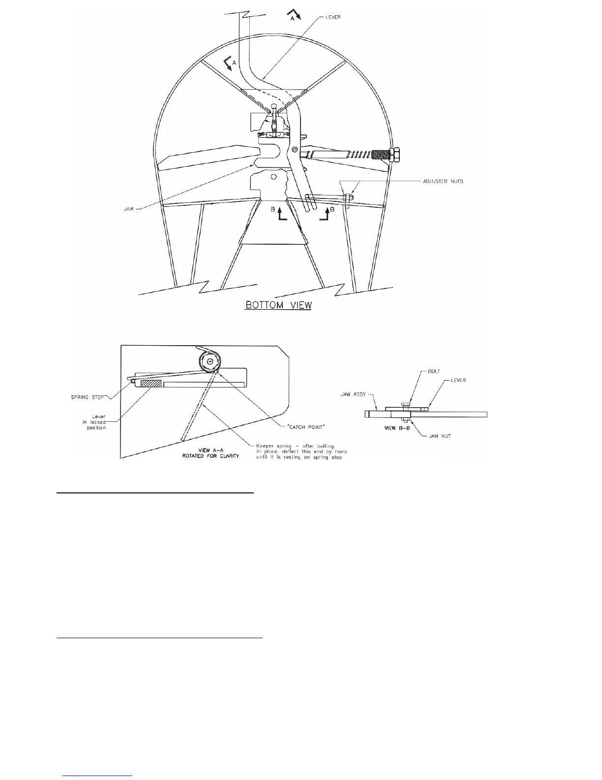 indicated in view A-A. If the lever won’t stay up, the adjuster nuts on the adjuster at the back end of the lever are