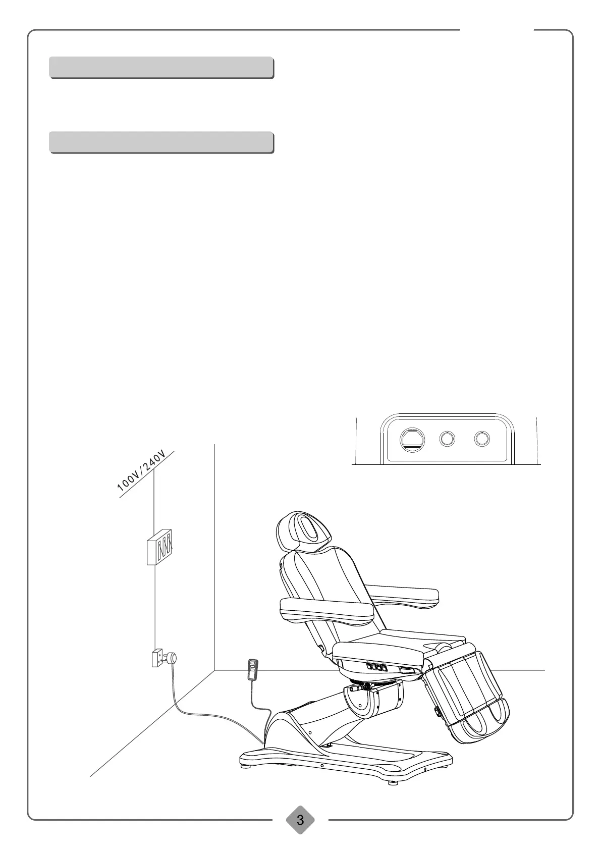 Voltage and frequency input shall be AC 100-130, 50/60Hz or 220-240V, 50/60Hz. Plug the bed on