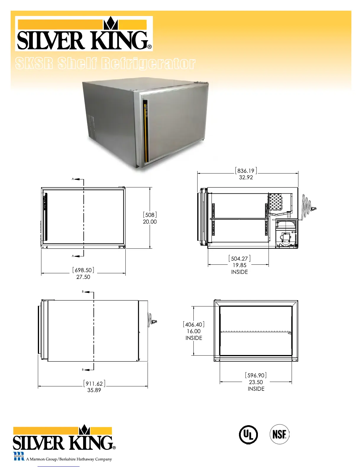 Silver King SKSR - SKSR Shelf Refrigerator Dimensions; Overall Unit Dimensions; Internal Space Dimensions