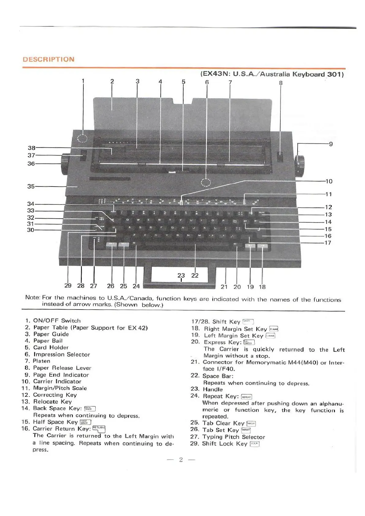 Silver Reed EX42 - Component Diagram