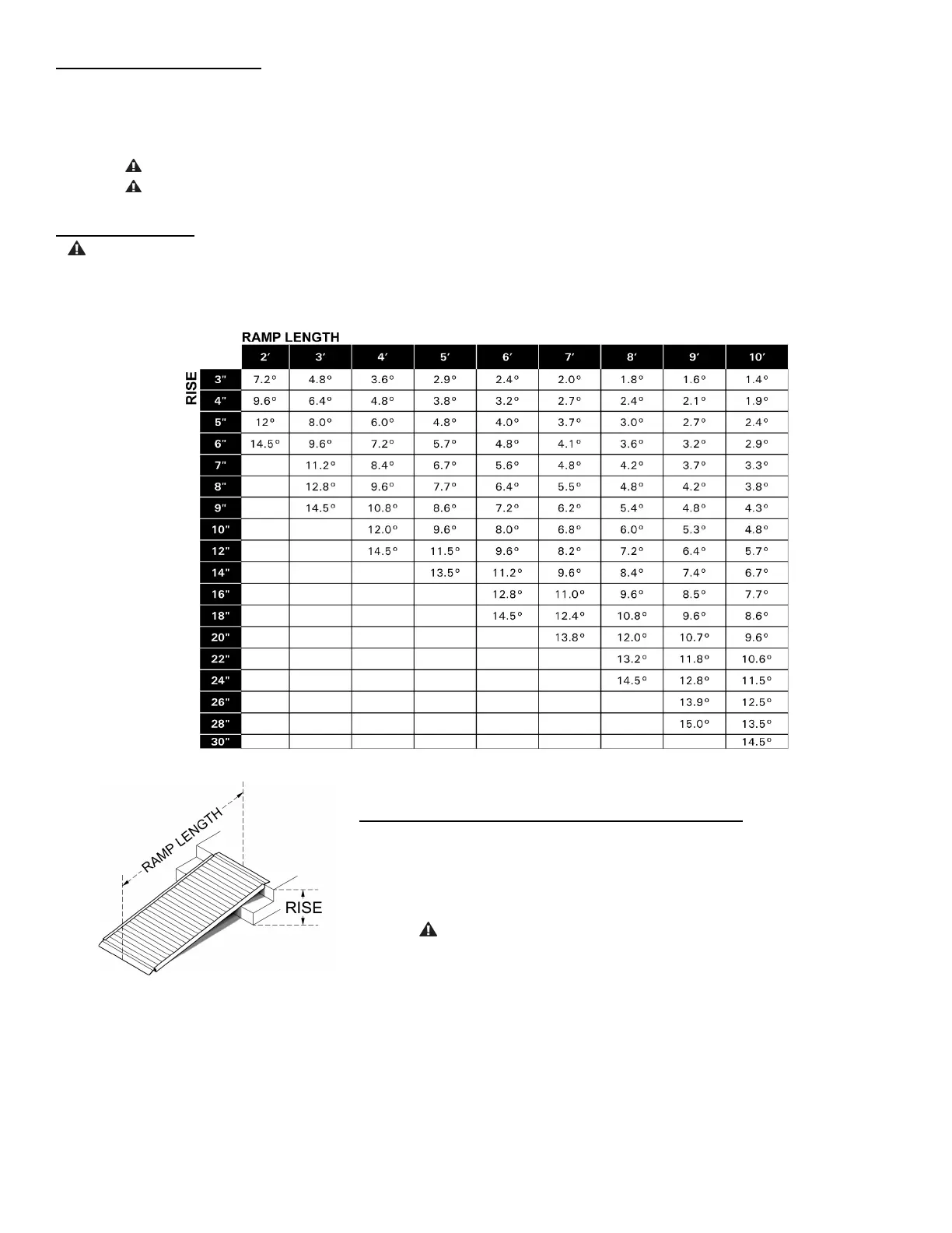 If a secure, unobstructed, level landing cannot be attained, do not use the ramp.