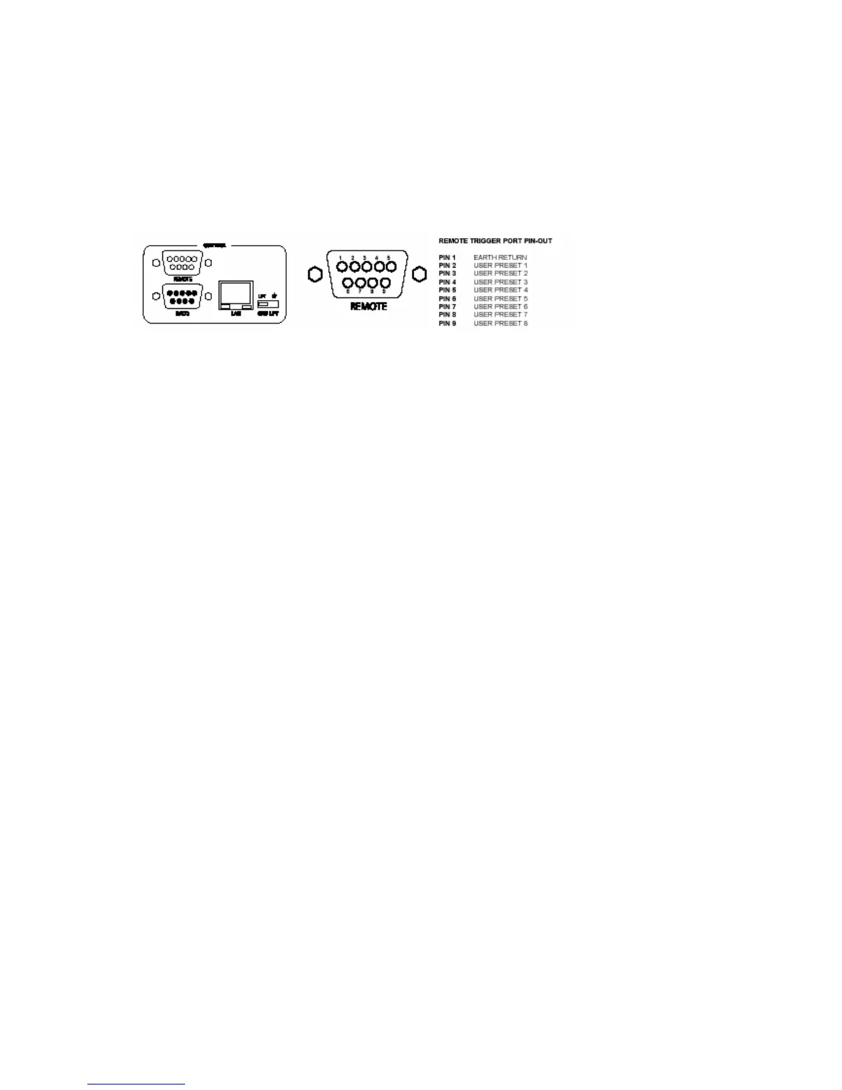 presets by pulling one of 8 pins on the trigger port socket low. The rear panel trigger port socket is a 9 pin male D-
