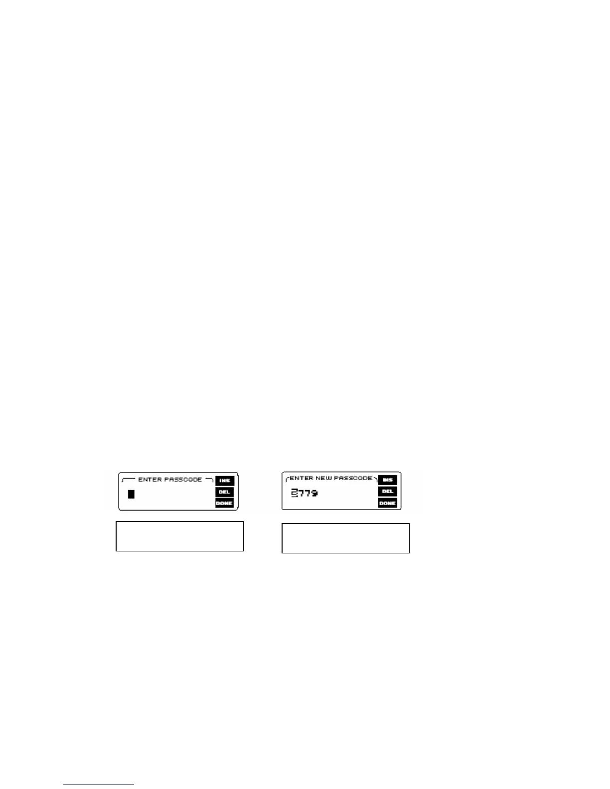 change the factory default code if you have not already done so. The soft keys will allow you to confirm the change or