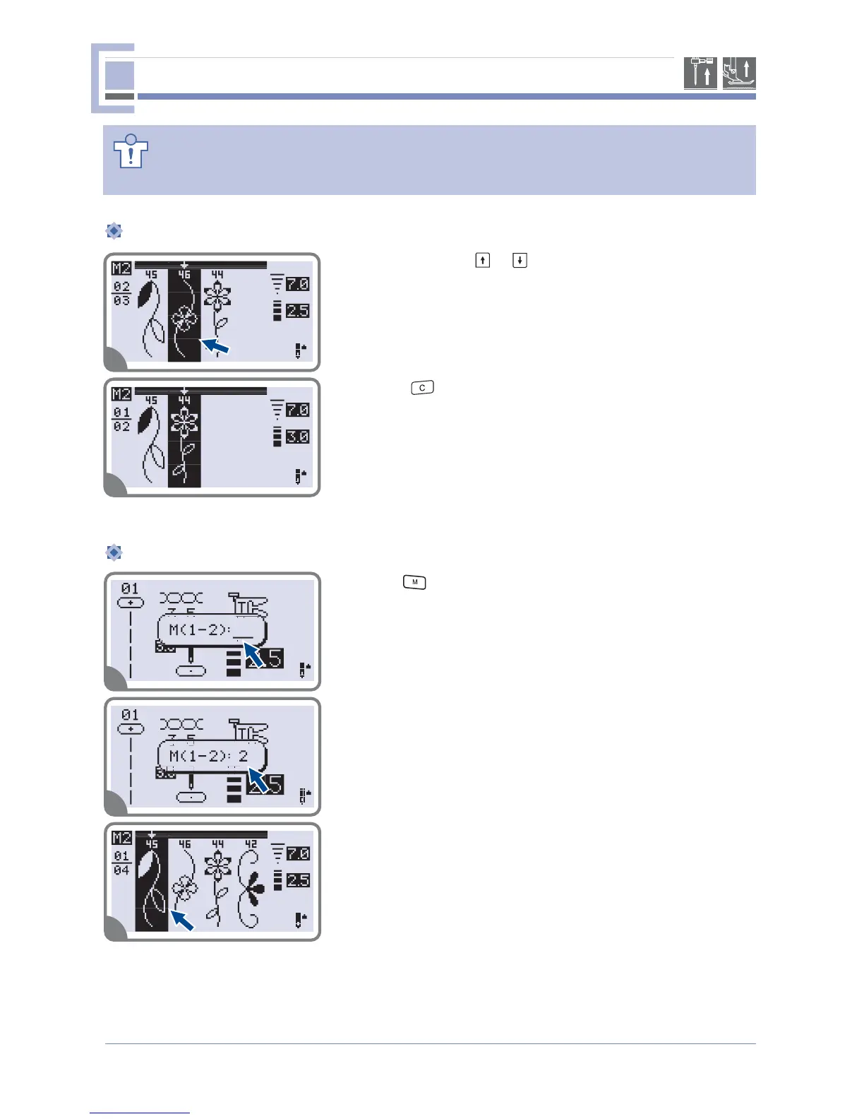 elongation, Auto-lock and so on ) will be available only when machine stopping sewing.