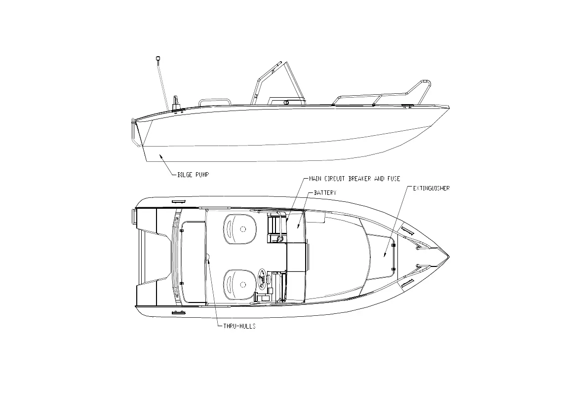 Fig. 5. Location of thru-hulls, shut-o valves and bilge pumps.