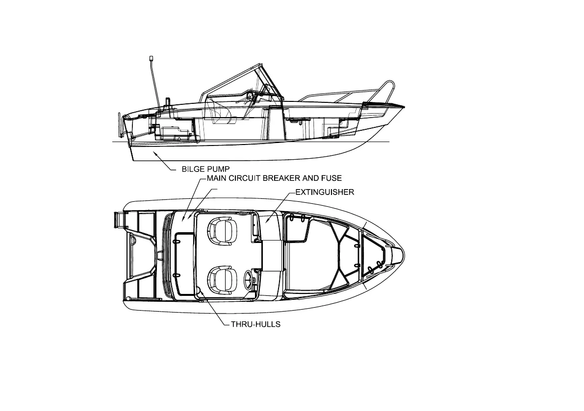 Fig. 5. Location of thru-hulls, shut-o valves and bilge pumps.