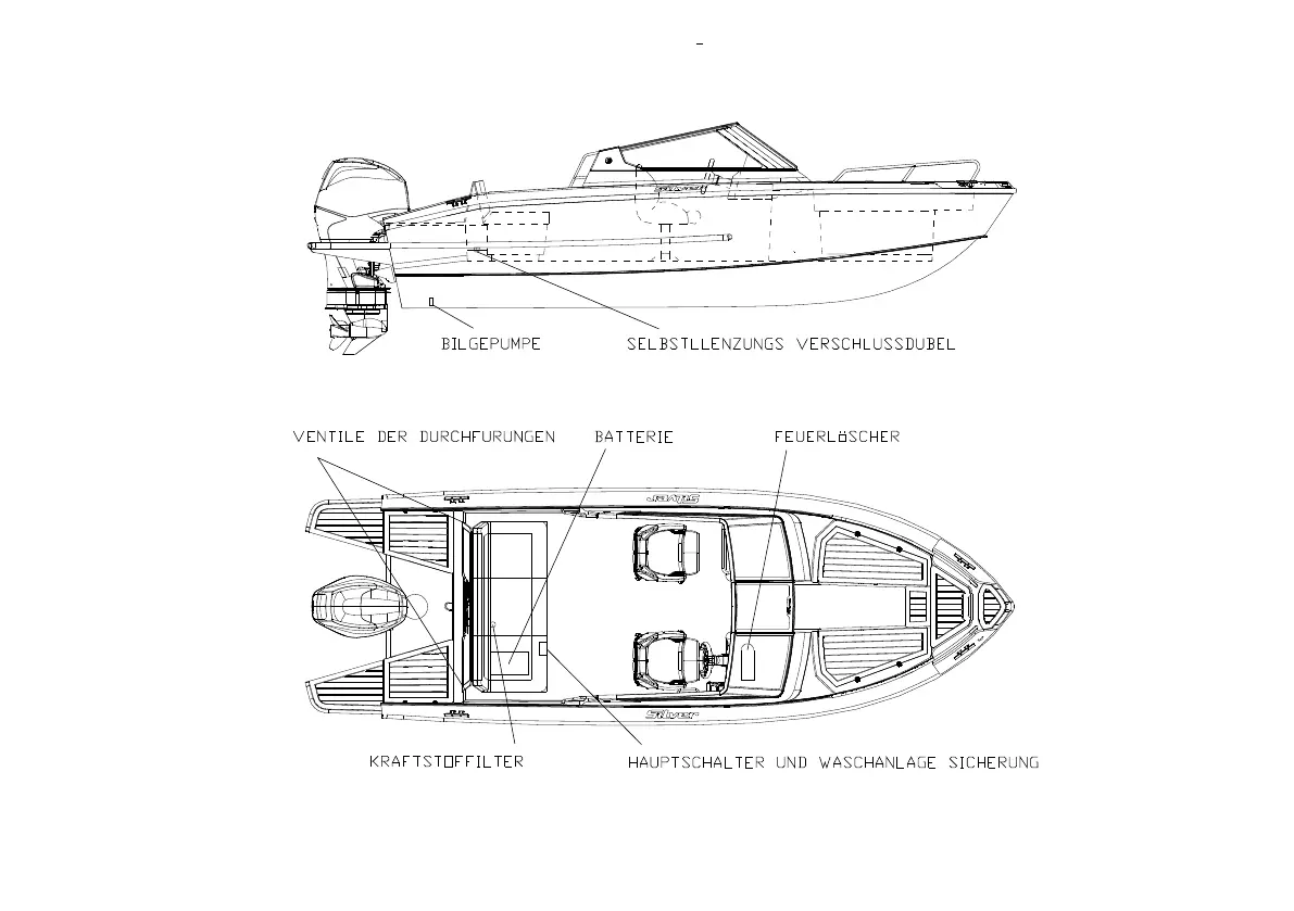 Abbildung 5. Lage der Durchführungen und Verschlussventile sowie der Bilgepumpen.