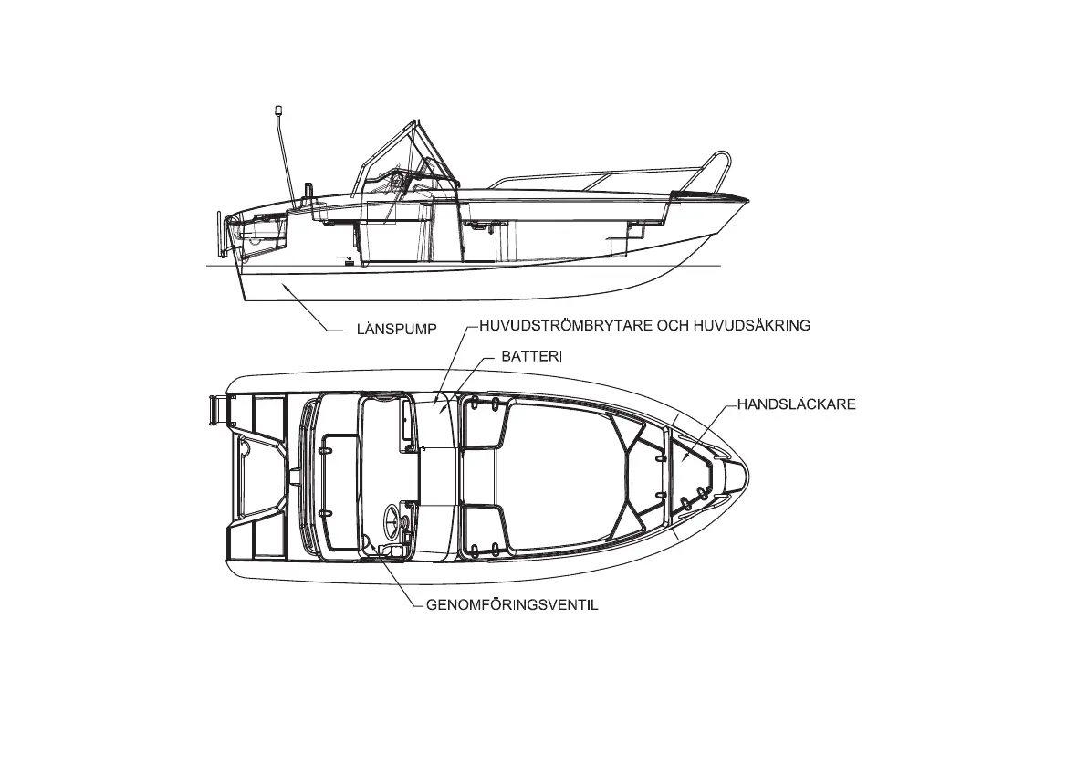 Bild 5. Placering av bordgenomföringar, avstängningsventiler och länspumpar.