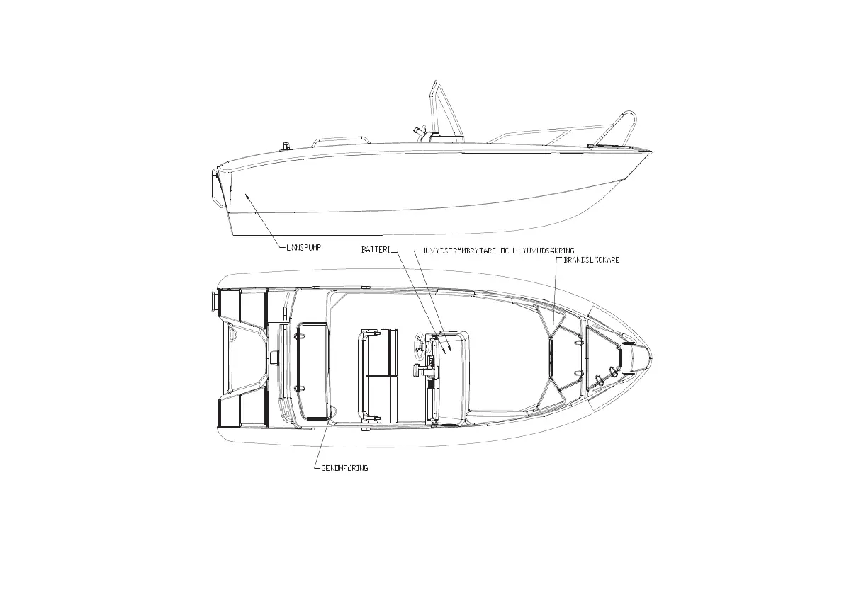Bild 5. Placering av bordgenomföringar, avstängningsventiler och länspumpar.