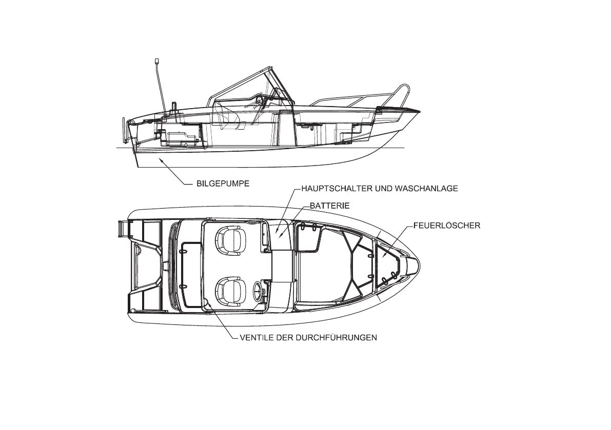 Abbildung 5. Lage der Durchführungen und Verschlussventile sowie der Bilgepumpen.