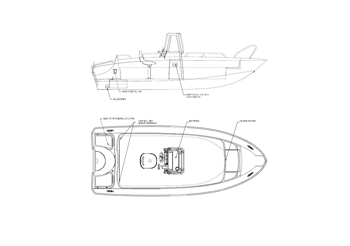 Abbildung 5. Lage der Durchführungen und Verschlussventile sowie der Bilgepumpen.