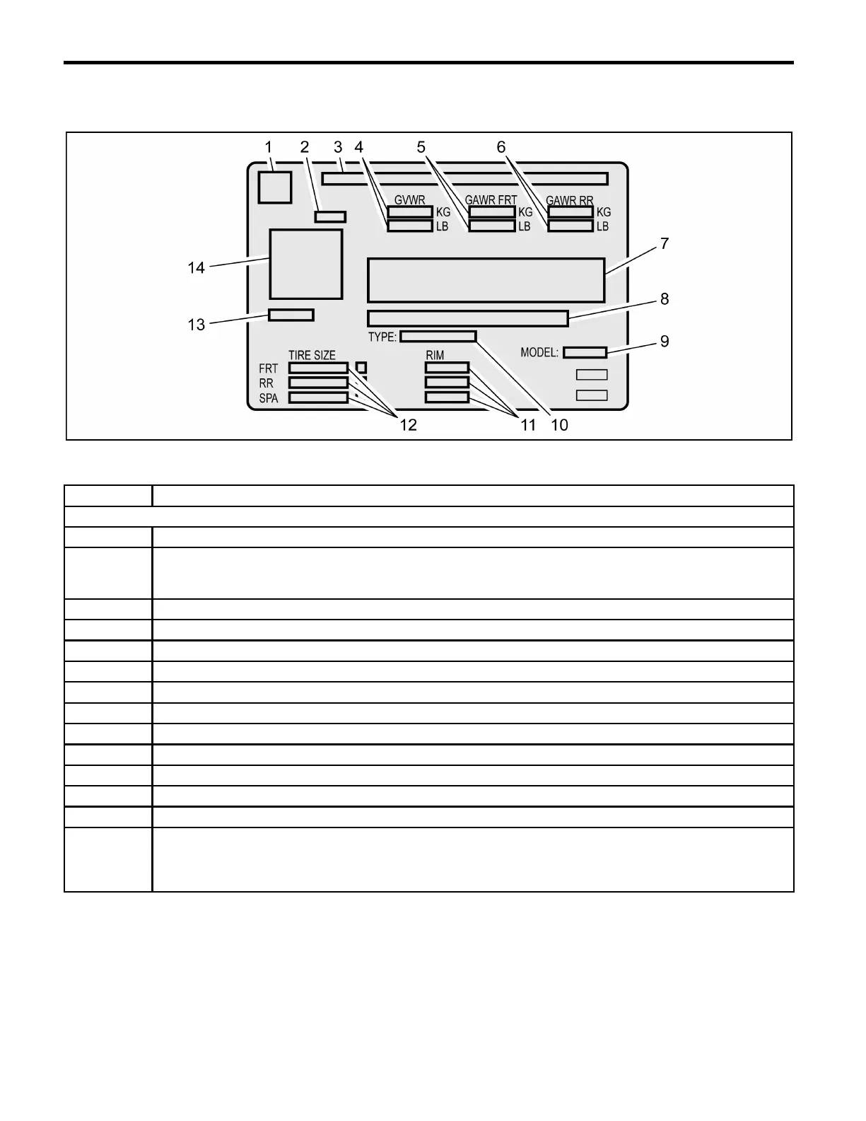Vehicle Certification, Tire Placard,