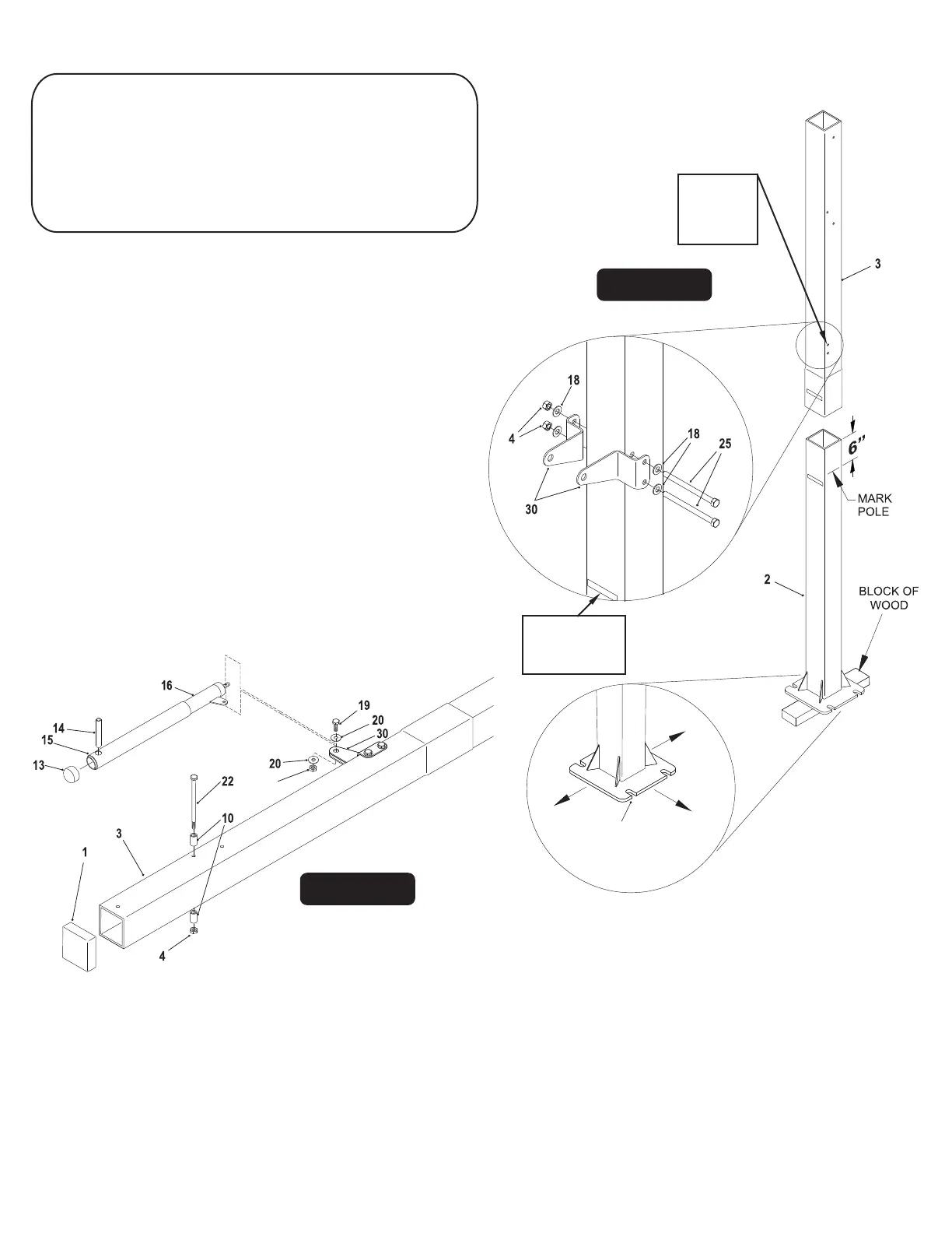 wood until the bottom of the upper pole reaches the 6”