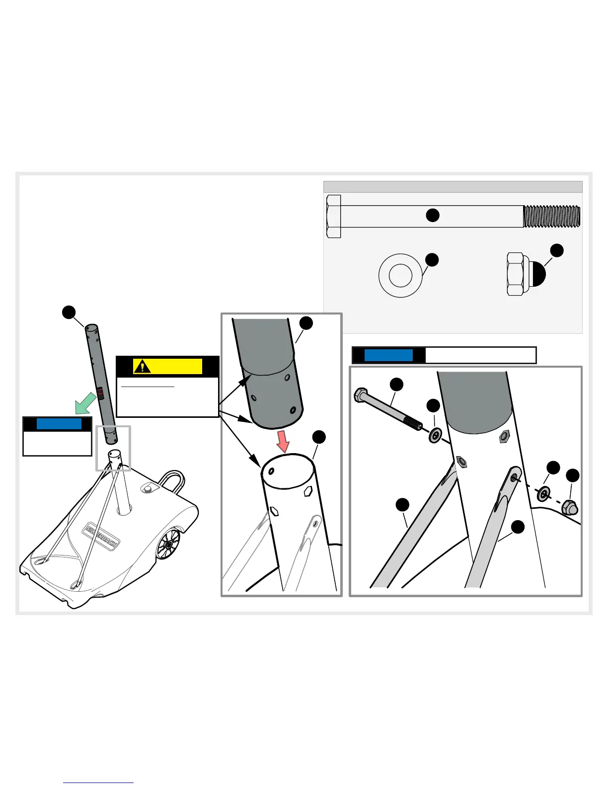 15. Insert Bolt (22) through braces 18 &19 and through both poles as