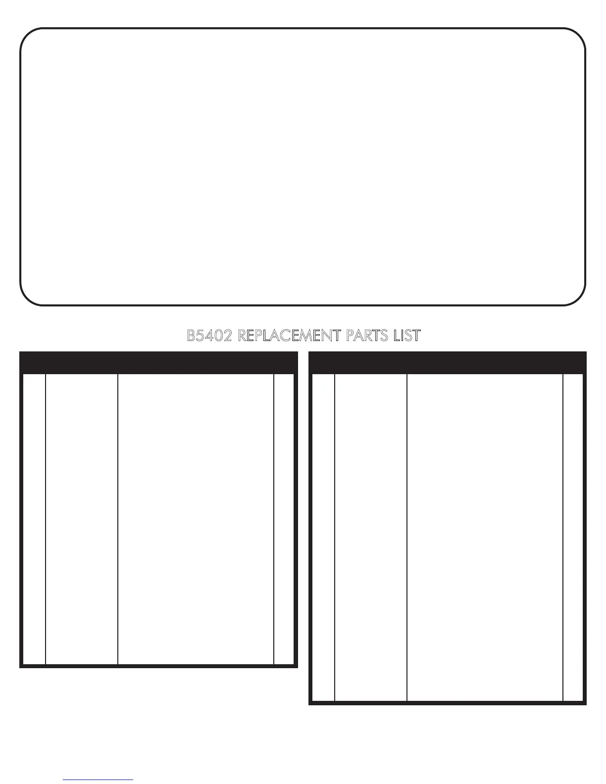 B5402 REPLACEMENT PARTS LIST
