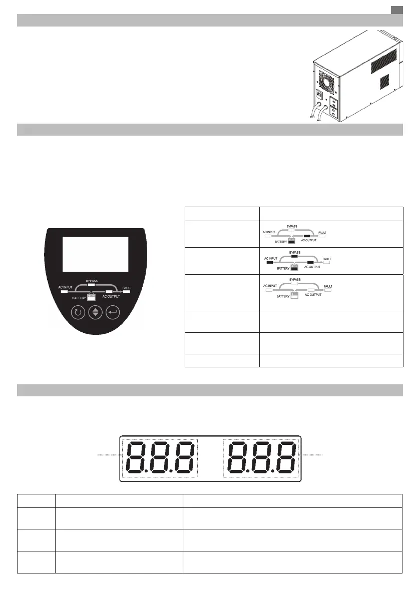 Turn on device: after you have plugged the power plug of the UPS into a 230V outlet, press and hold the power button to