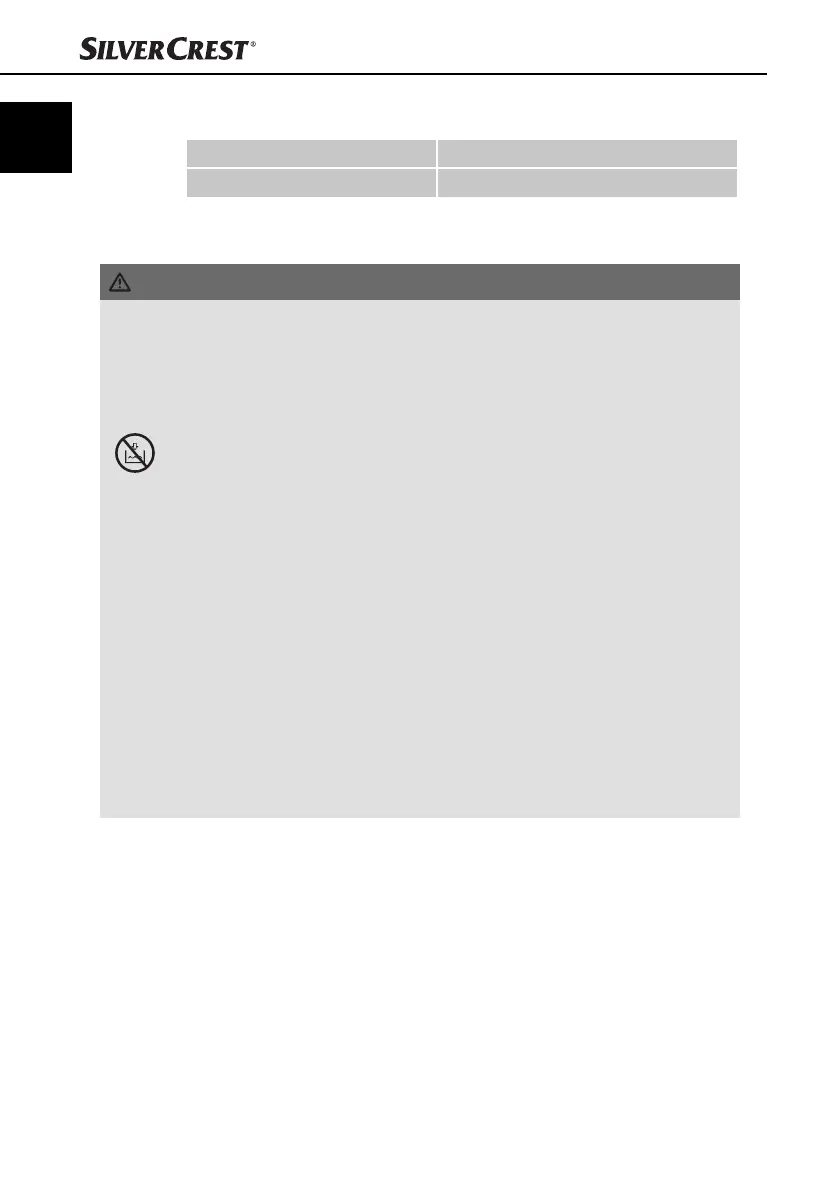 ► Ensure that the appliance can never come into contact with water.