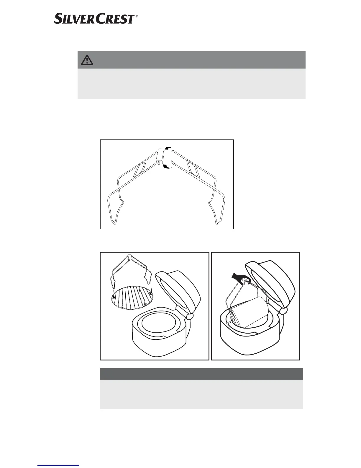 inner bowl 0, the basket q or the grill rack r from the hot appliance.