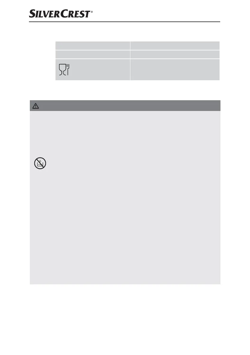 ► NEVER insert cutlery items or other metallic objects into the