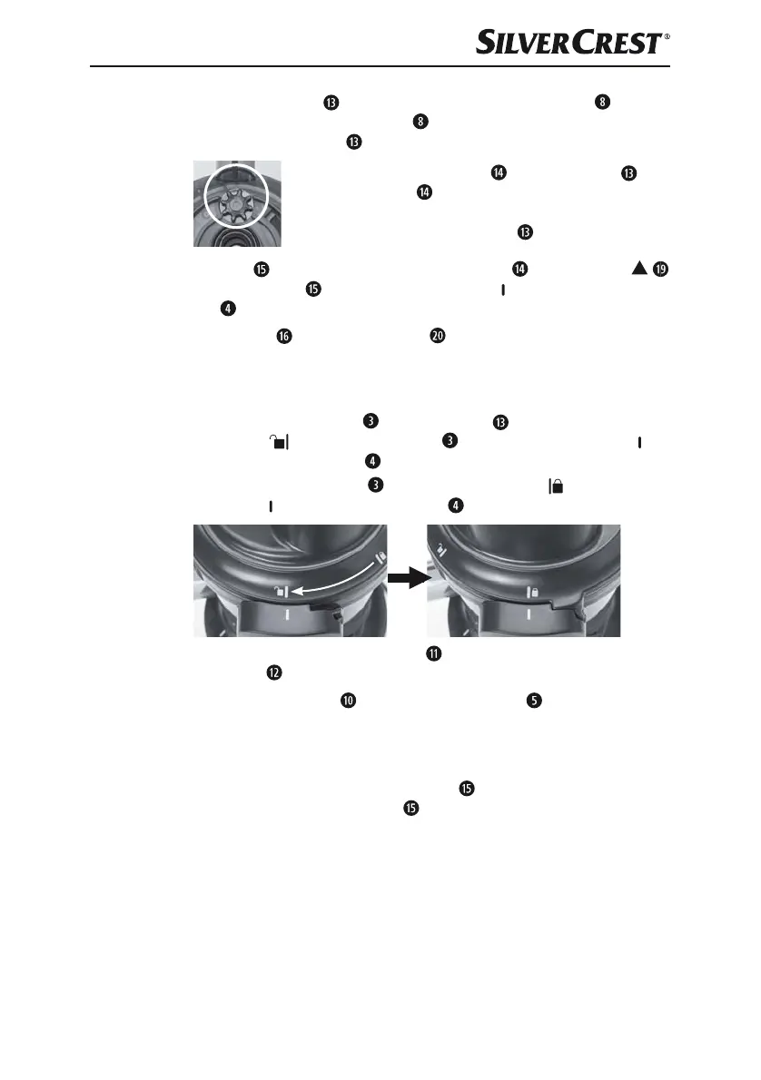 oznaczenie na uchwycie obudowy sita i na stale się zatrzaśnie.