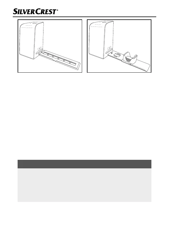 ► Dbejte na to, aby se nový diapozitiv do skeneru zasouval