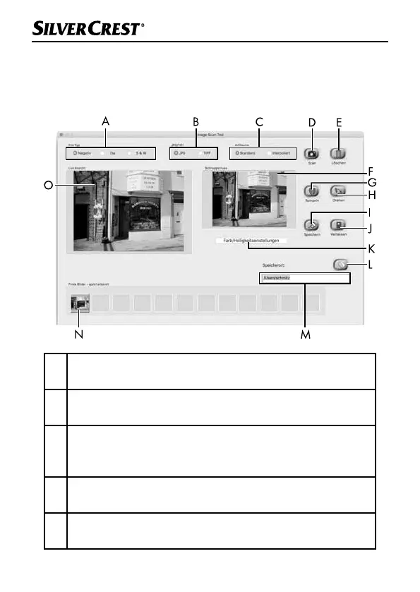 B Wählen Sie hier das Dateiformat (JPG oder TIFF) in welchem