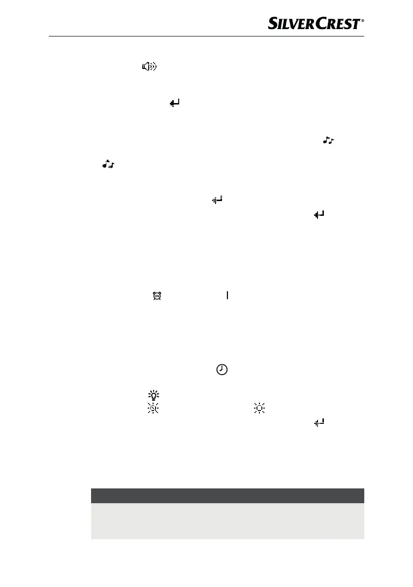 ♦ Appuyez à nouveau sur la toucheSET pour régler le volume de la mélodie