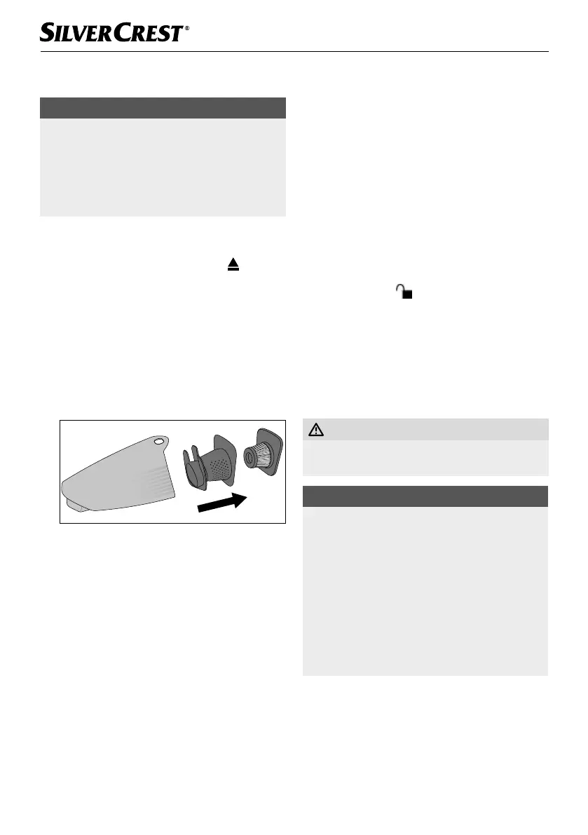1) Um den Schmutzbehälter 8 zu öffnen, nehmen