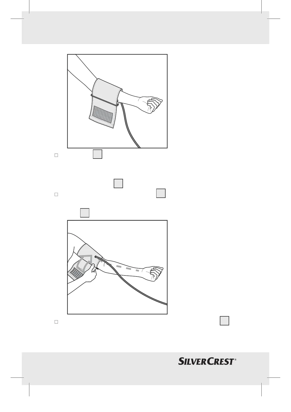 tightly, around the arm and close the Velcro strip. The