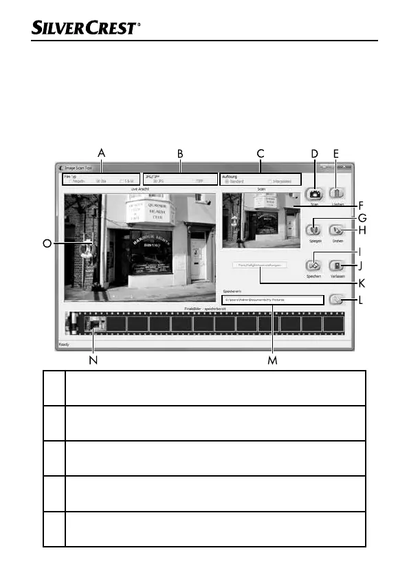 B Wählen Sie hier das Dateiformat (JPG oder TIFF) in welchem