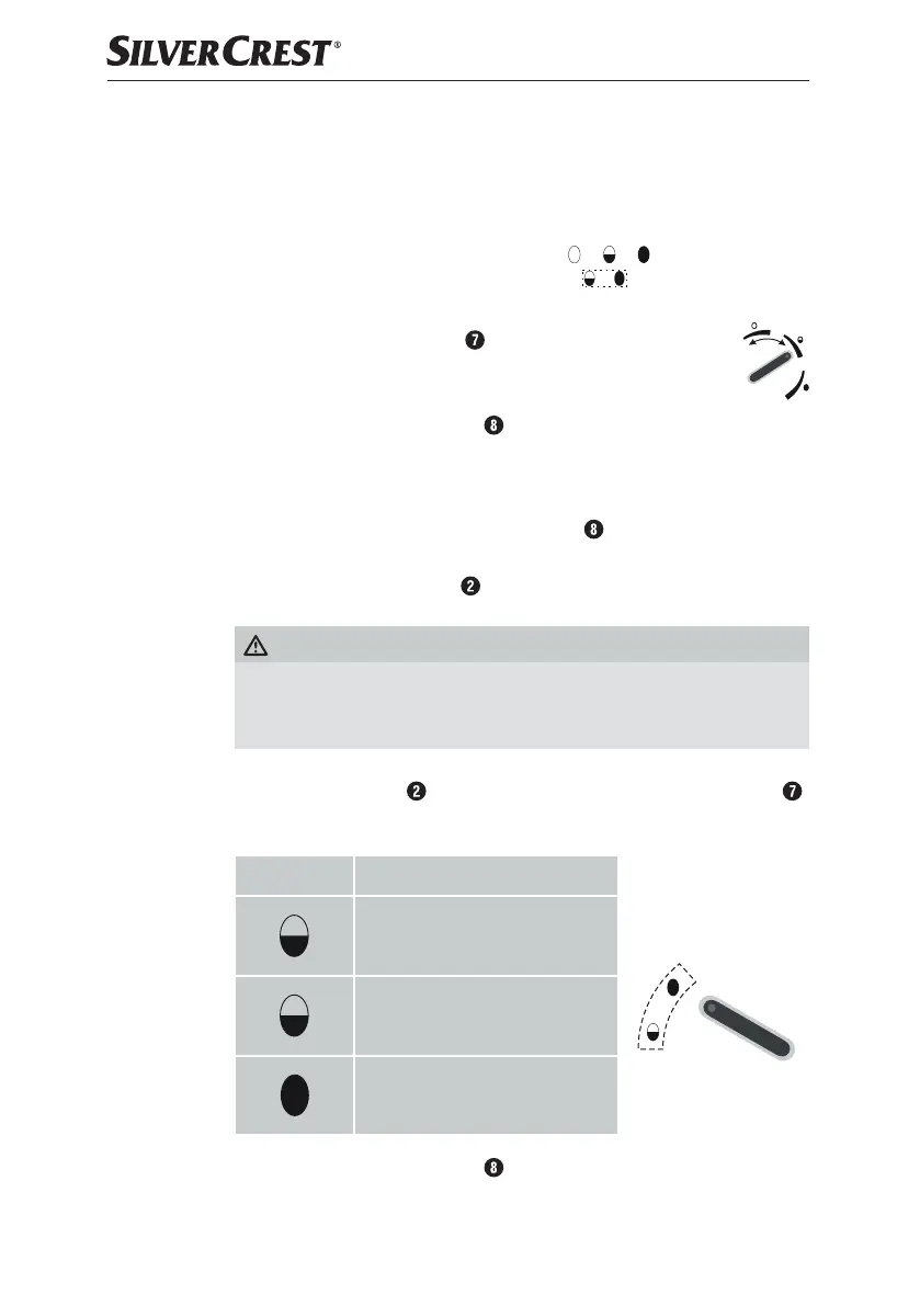 Für den ersten Kochvorgang gelten die Symbole rechts des Reglers.