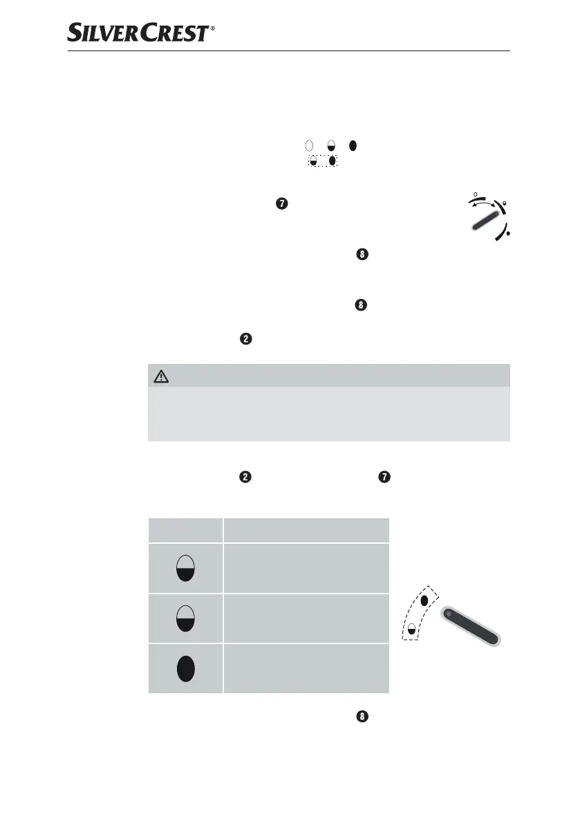 a otočte regulátor výkonu do polohy symbolů