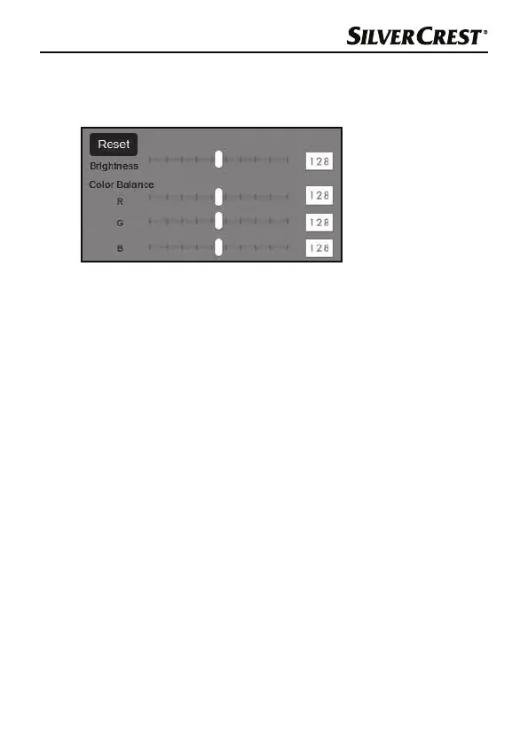 ♦ Pomaknite tri klizača „Balans boja“ za postavljanje RGB vrijed-