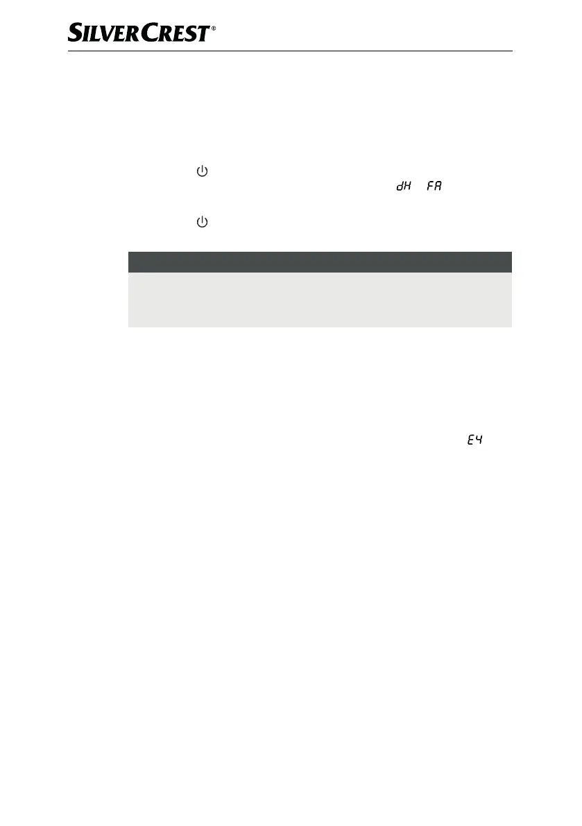 ► The appliance always starts up with the last selected setting.
