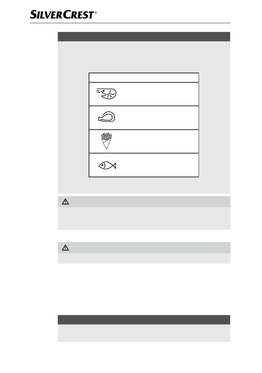 de tiempos de fritura" de estas instrucciones. Las imágenes situadas en la parte