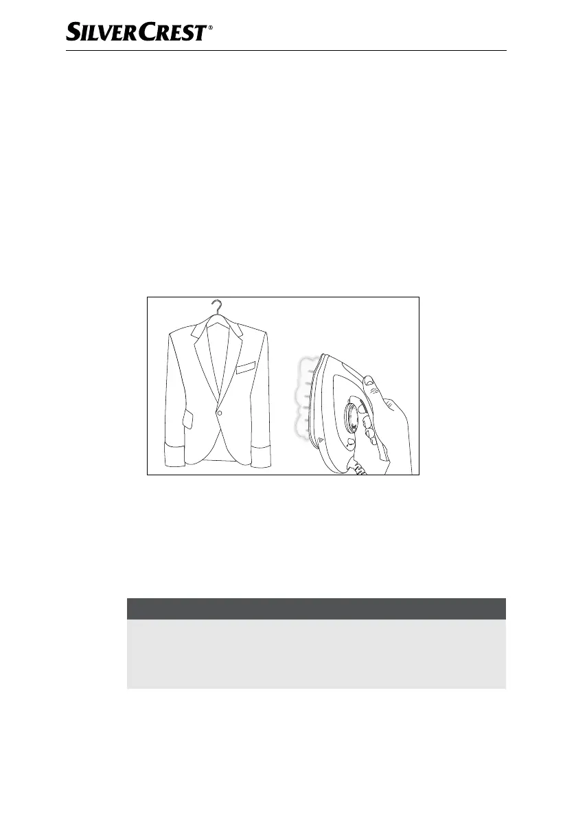 6) Effleurez le vêtement avec la semelle de repassage 8 et vaporisez de la