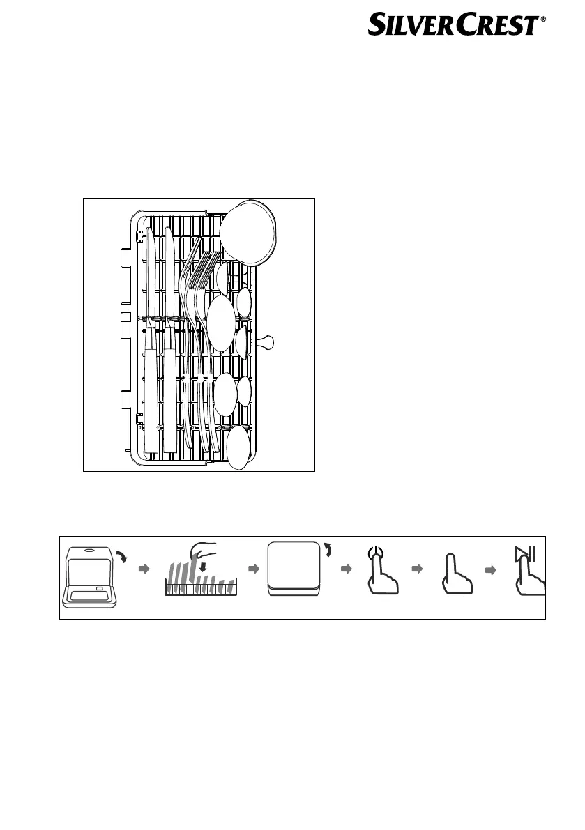 Placez les couteaux longs et tranchants ainsi que les couverts à l’horizontale dans le