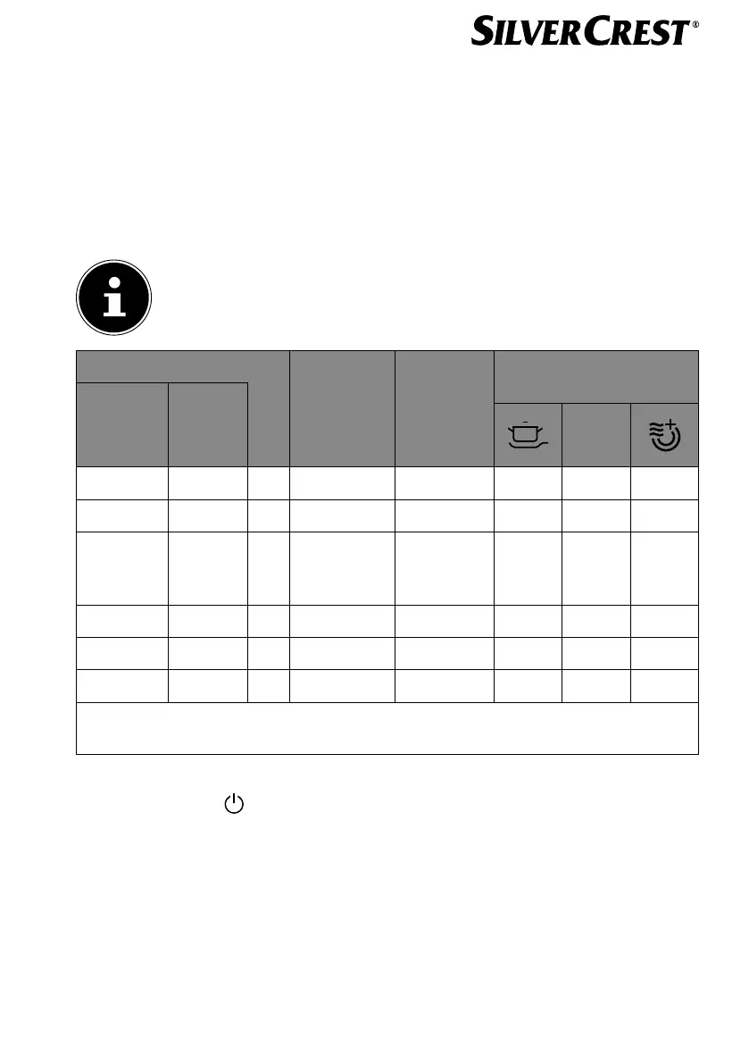 Pak opakovaným stisknutím tlačítka P (18) podle výše uvedené tabulky nastavte spo-