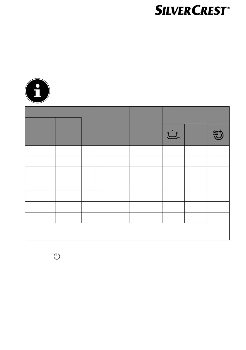 Then press the P button (18) several times in accordance with the table above to set the