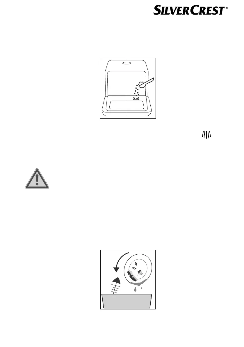 Add the dishwasher detergent into the dosing chamber (9) marked with the