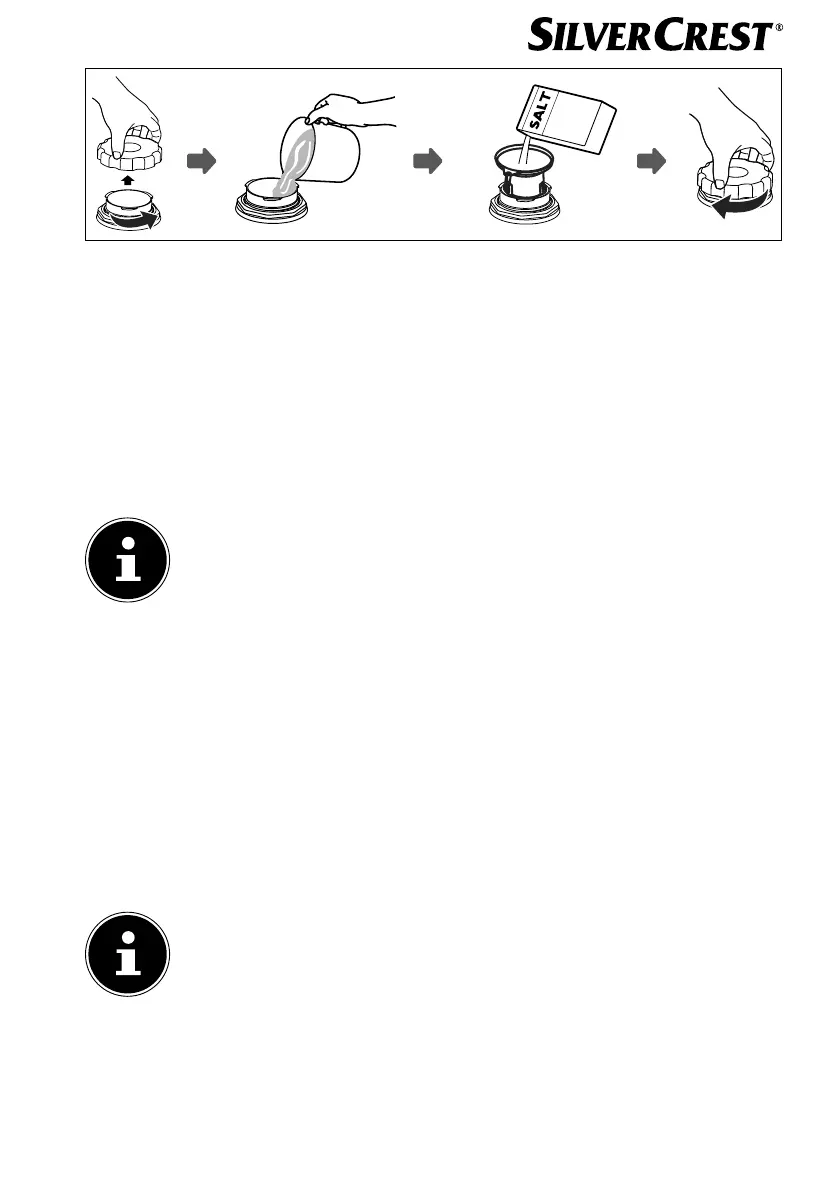 Antes del primer uso, añada aprox. 0,5l de agua en el depósito de sal (11) (véase