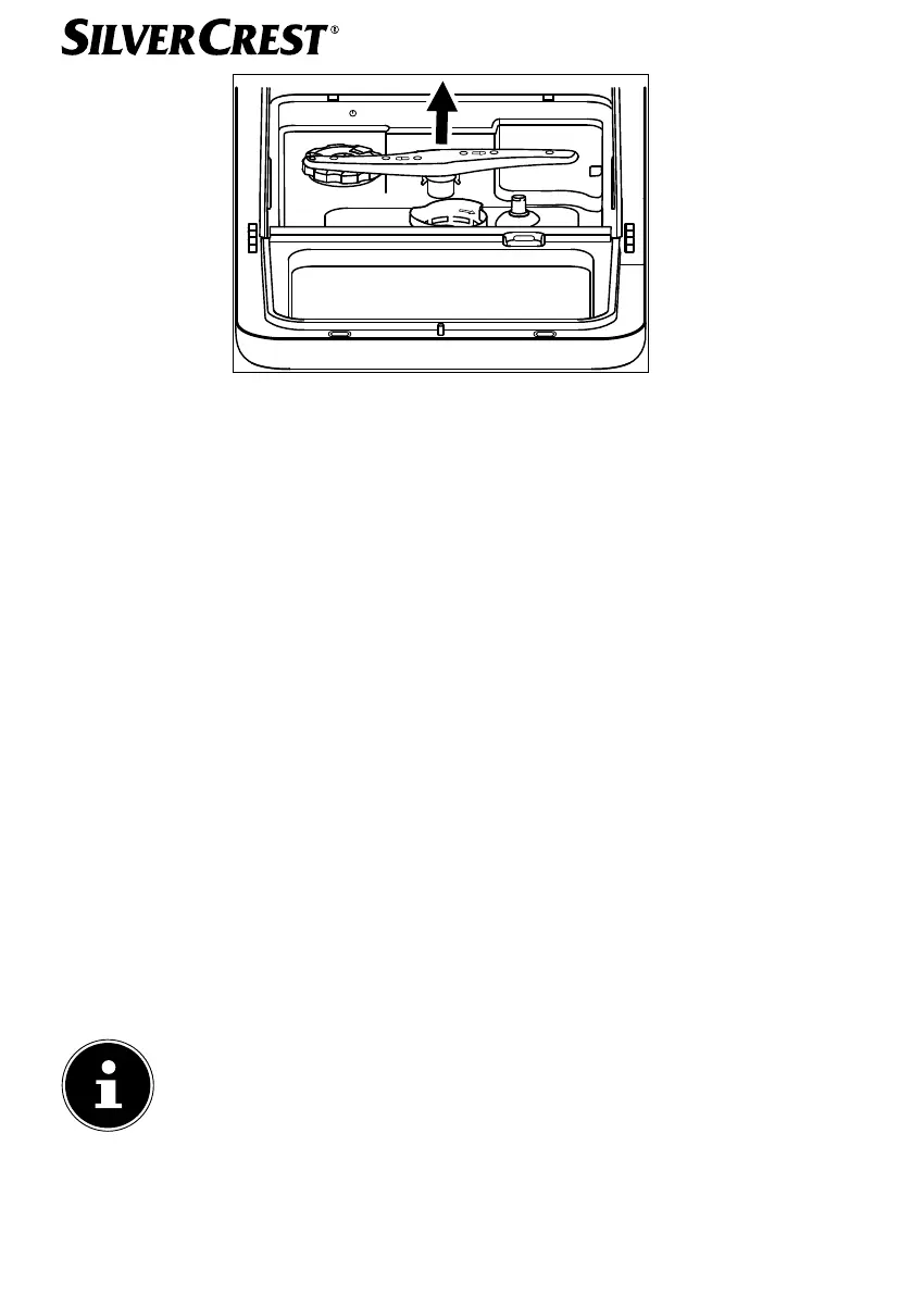 and remove them. Clean the spray arms (3/4) under running water and check that the