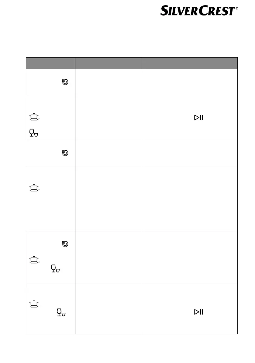 Hvis fejlen ikke kan løses ved hjælp af tabellen, kontaktes serviceafdelingen.
